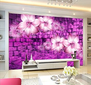Lwcx 3d Wallpaper Purple Flowers Stereoscopic Television Mural 3d