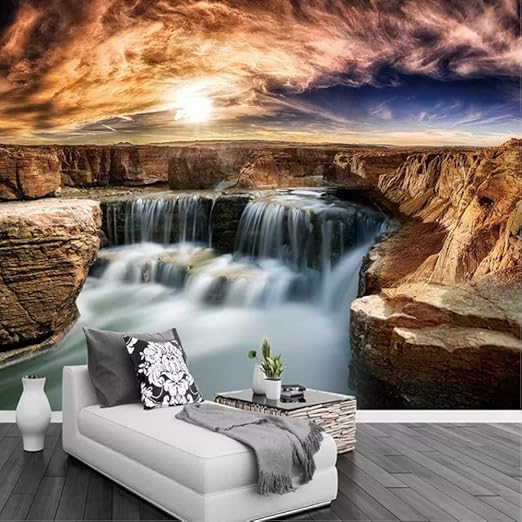 Amazon Com Pbldb 3d Wallpaper Walls Rock Waterfall Living Room