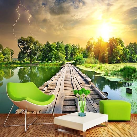 Amazon Com Pbldb 3d Wallpaper Classic Wood Bridge River Sunset