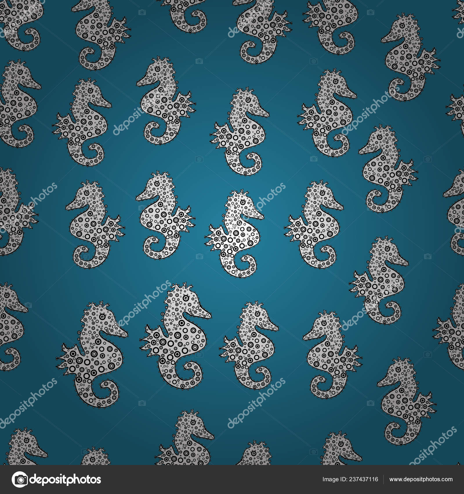 Blue White Black Sea Horse Hippocampus Stock Illustration 1400984864