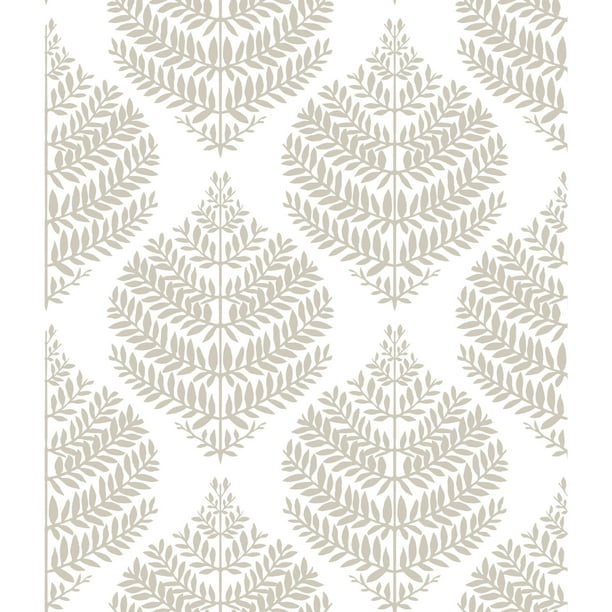York Wallcoverings Hygge Fern Damask Taupe And White Peel And