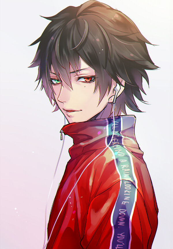 All Male Bicolored Eyes Black Hair Chisumi Hat Headphones Hoodie
