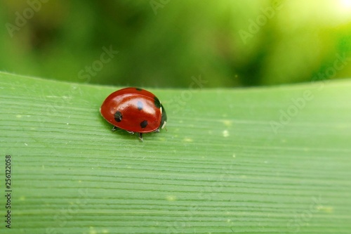Ladybug On A Green Leaf Close Up On Ladybug On Green Background