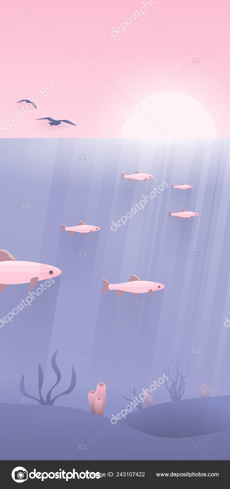 Vector Cartoon Underwater Tropical Illustration Vertical Stock
